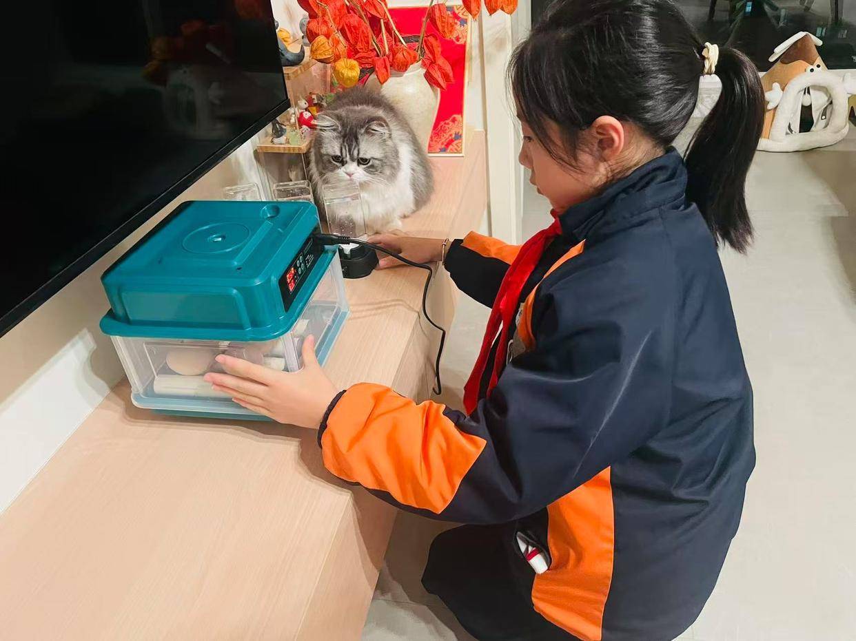 “小学科学课上,对于动物的常识是孩子们三年龄学的”,提及带学生孵化鸡蛋的初志,肖春霞的想绪回到了本年11月:“有一天我与孩子们在课间谈天时,有学生不经意地问:‘动物能不可在冬天也孵化出来呢?’这个问题激勉了我的素养想考,在刻下科学+的期间配景下,我就想能否带他们开展以‘蛋生遗迹’为主题的花样式学习实行活动。”