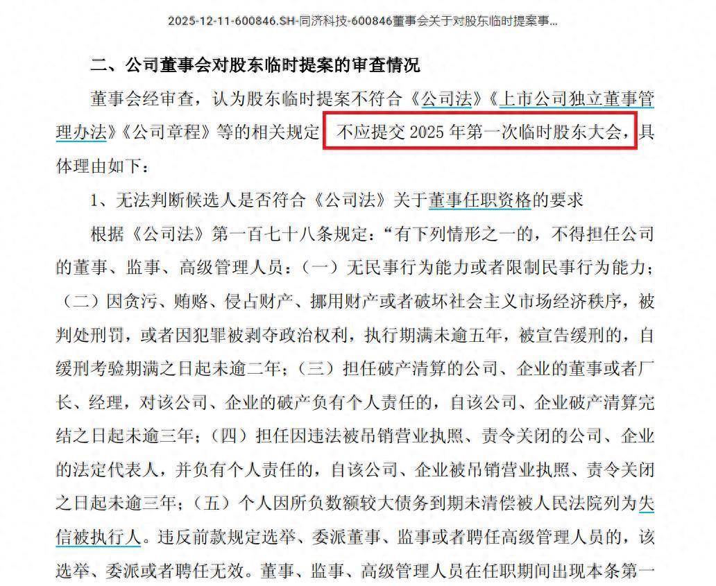 同济科技“内斗”风云再起:二股东临时提案被否,“超期入伍”董事会堕入换届僵局